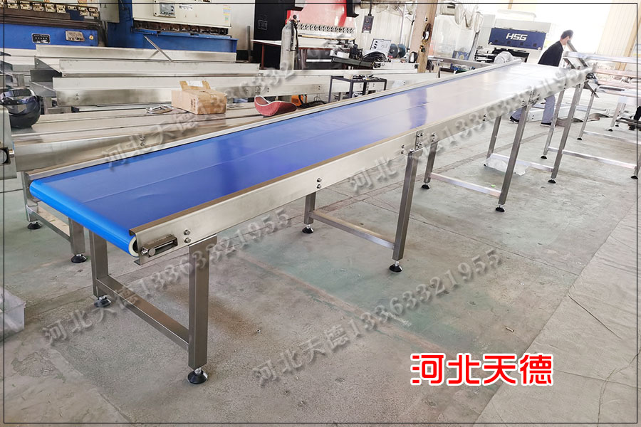 外圓弧板面,也就是滾筒的大端選用標(biāo)準(zhǔn)球面軸承,這種90度導(dǎo)輪式轉(zhuǎn)彎鏈條輸送機(jī)選擇是菱形座外球面軸承-205。其次整臺(tái)鏈條轉(zhuǎn)彎輸送機(jī)下方支撐架,機(jī)架選擇碳鋼、不銹鋼制作。整臺(tái)轉(zhuǎn)彎輸送設(shè)備高度與寬度需按客戶要求設(shè)計(jì),驅(qū)動(dòng)電機(jī)按照用戶需要設(shè)置在機(jī)架下面或機(jī)架上面。有速度調(diào)節(jié)要求要選擇變頻調(diào)速或選擇變速的減速電機(jī)。 皮帶轉(zhuǎn)彎?rùn)C(jī)