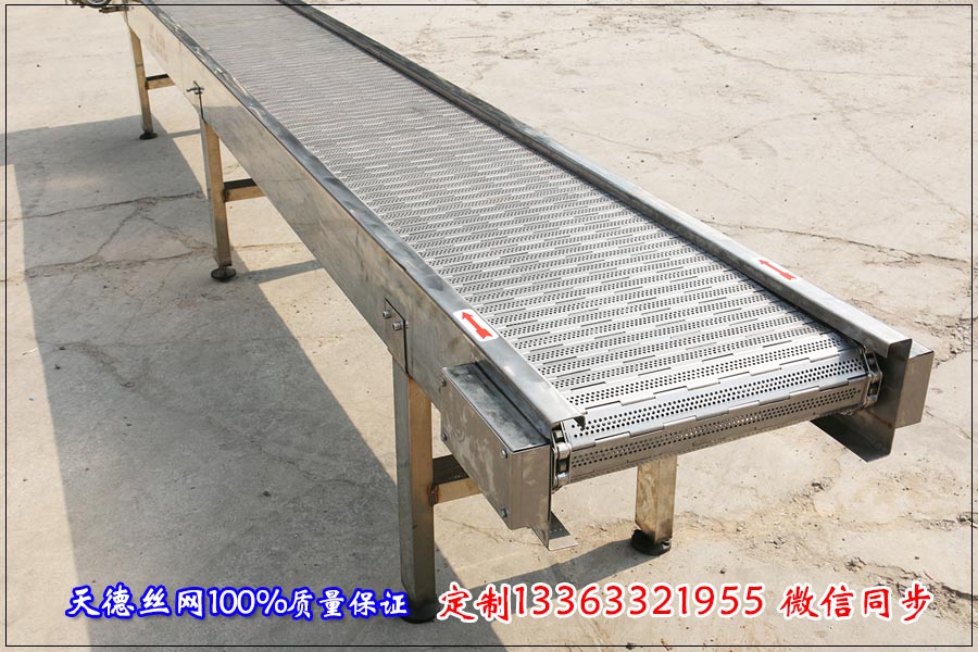 河北天德絲網制品有限公司生產不銹鋼輸送機、網帶輸送機、金屬輸送帶、鏈板輸送帶、板式網鏈:13363321955 http://www.rqnpht.com/