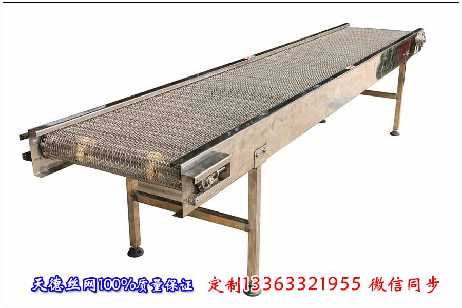 天德絲網生產的網帶輸送機采用電機驅動和變頻器調速。不銹鋼網帶輸送機采用RV電機的話需要調節速度就需要另外單配一個變頻器,因為RV電機和減速機是一體的,組合起來才叫RV電機,如果使用擺線針電機就不用單配變頻器達到減速的效果,直接采用小輪帶動大輪的原理進行不銹鋼輸送機的調速,而且變頻只能往慢了調,也是為了盡量的防止金屬輸送帶出現磨損并壞掉的現象,這種輸送機不能和皮帶輸送機相比較,否則會加速金屬輸送帶的磨損程度,這樣有損金屬輸送帶對物料不能進行長時間的傳送。 天德絲網生產各種規格的網帶和輸送機,有豐富的經驗,能夠完成大型的輸送帶加工的工程。