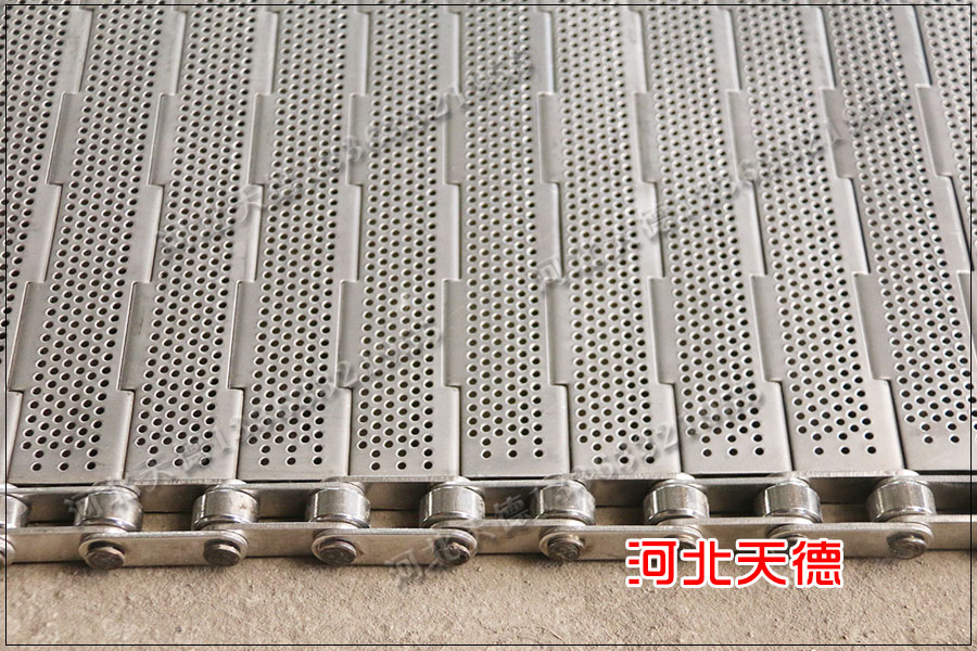 打孔輸送鏈板廣泛的應用在烘干行業和清洗行業中,因為打孔輸送鏈板可以在烘干行業中使用可以增加透氣性,提升烘干產品的速度,用在清洗行業中可以淋水,保證在輸送的過程中將多余的水分淋出去。