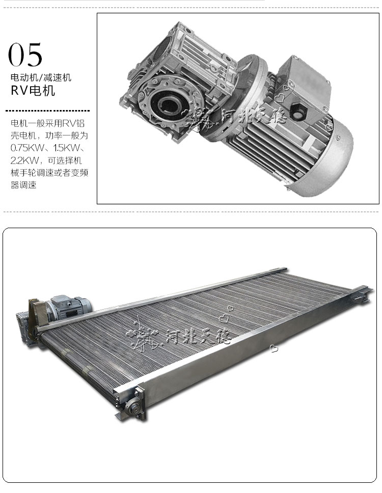 該輸送機用于物料的輸送。采用不銹鋼網帶作為載體,適用于各種食品行業的烘干、去濕、冷凍等、熱處理等;不銹鋼制成,具有耐高溫、便于清洗等特點。輸送機應用行業:食品、冶金、電力、煤炭、化工、建材、碼頭、糧食等。